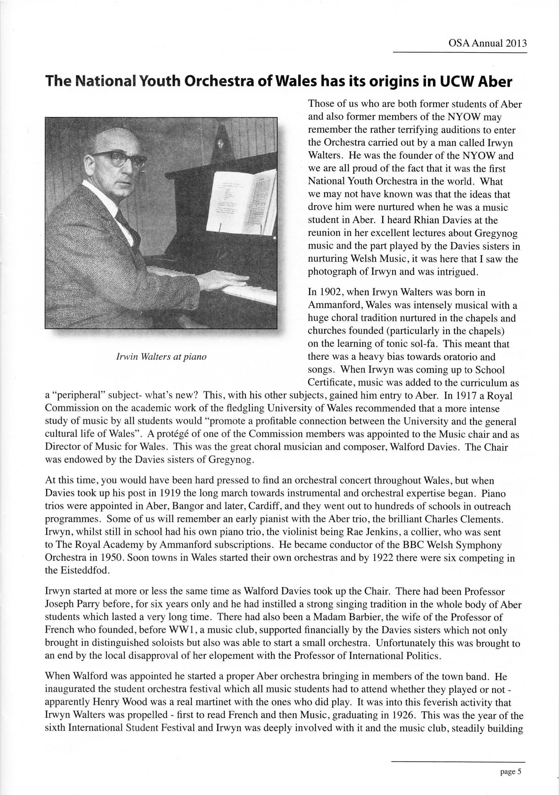Article written by Noreen Harris for the Aberystwyth Old Students’ Association publication.