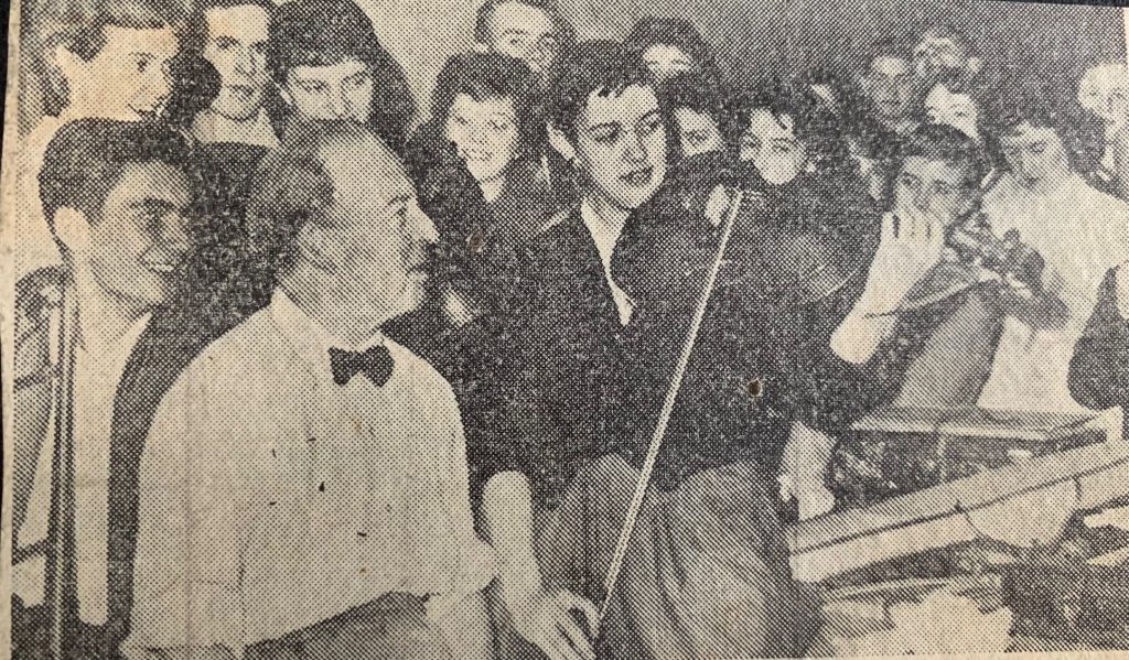 Tutors Gwynne Edwards (Upper strings) on the right and Ambrose Gauntlett (Cello) on the left. Both were well known and respected London players and both played in the orchestra chosen for the Coronation in 1953.